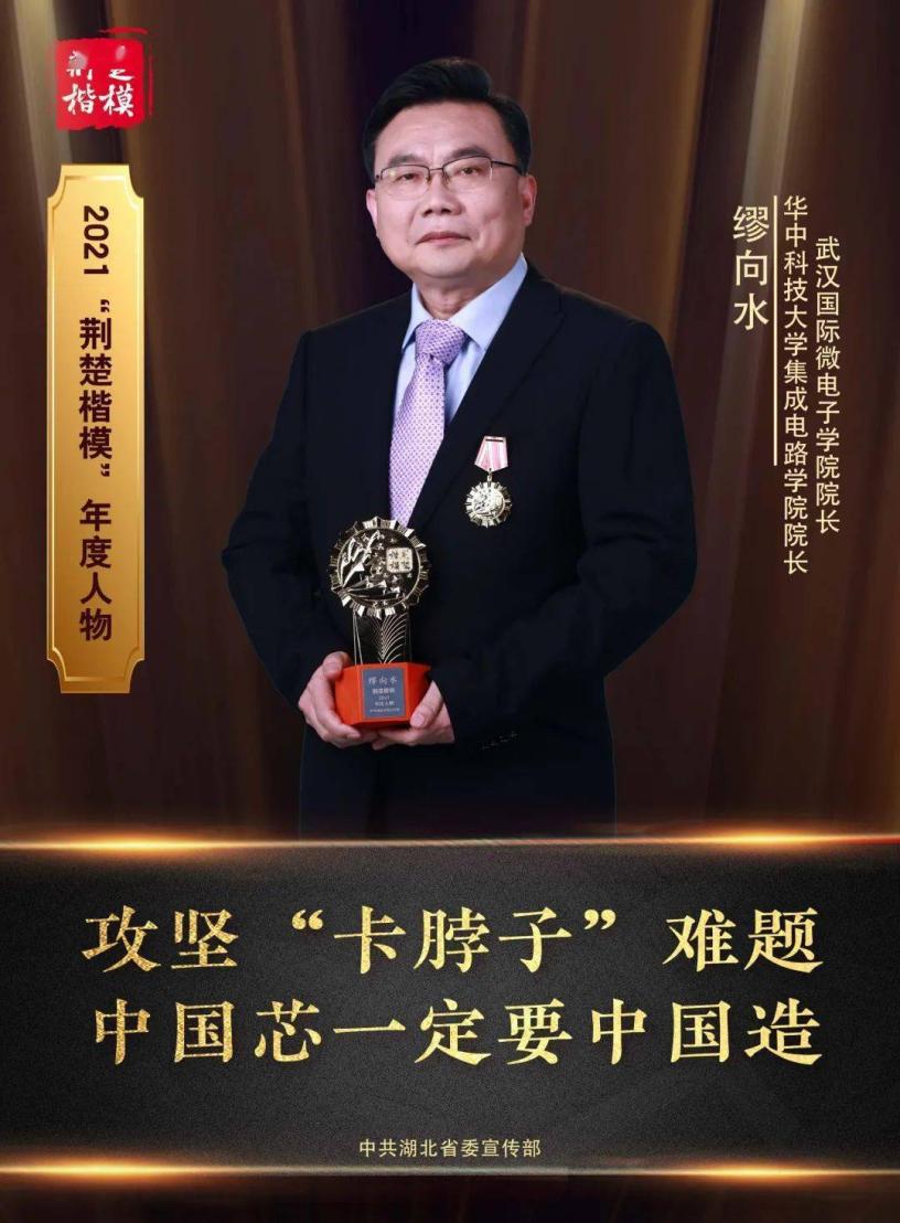 4月26日,湖北省委宣传部举行“光耀新时代共同向未来”2021荆楚楷模年度人物发布仪式。缪向水教授作为2021荆楚楷模年度人物第一个登台亮相。他的颁奖词是:你追随内心的指引,放弃海外高薪,只因方寸毫厘,攸关国运;你在针尖闯关,矢志破冰,微缩的金属层,并联着伟岸的中国“芯”!
