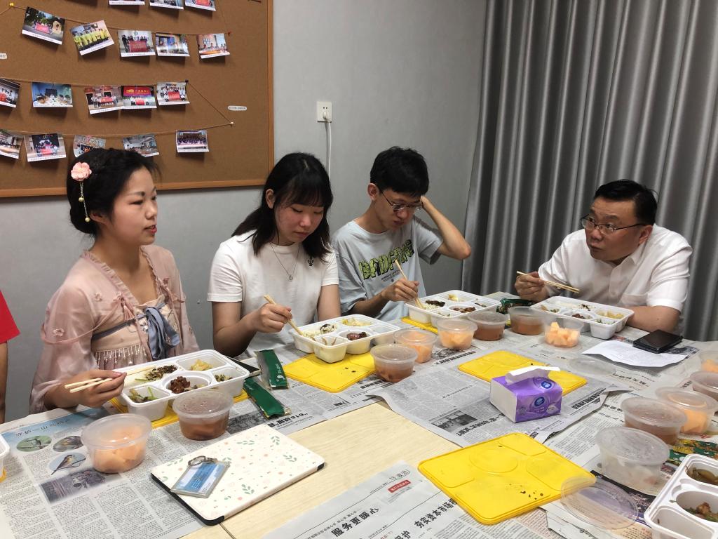 6月21日中午,光电信息学院副院长、集成电路学院院长缪向水教授前往”光电之家”社区文化中心与12位大三年级学生代表座谈交流,学工组辅导员姜波、廖先桥、徐彦亮参加此次会议。
