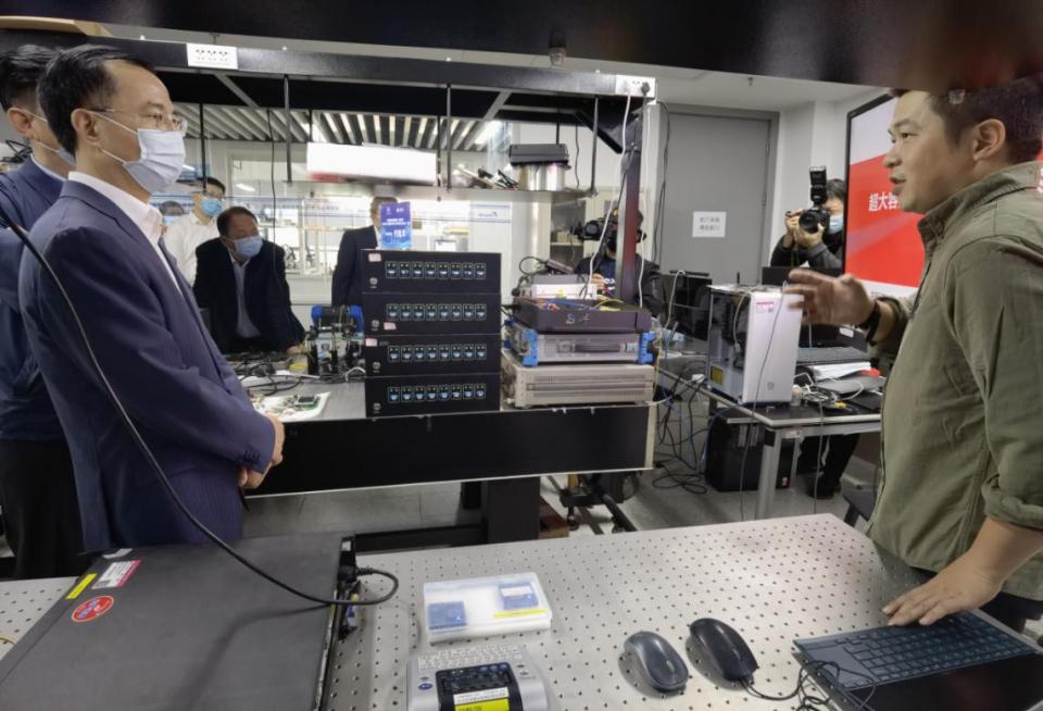 11月19日,中国联合网络通信有限公司党组书记、董事长刘烈宏一行到访国家工程研究中心。华中科技大学常务副校长王伟,党委办公室、校长办公室主任张耀,科发院副院长林磊陪同参观。国家工程研究中心主任刘德明、常务副主任张敏明、主任助理鲁平、光纤接入研究所所长杨奇、物联网接入研究所所长孙琪真、程孟凡老师等参加了接待。