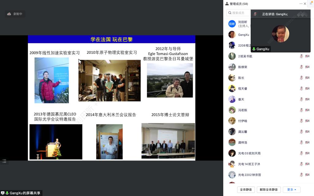 第一位嘉宾是我院的徐刚教授,博士生导师,入选湖北省高层次人才项目和国家级青年人才项目,主持国家自然科学基金面上项目。徐刚博士本科毕业于原光电学院2006级中法班,2012年取得法国巴黎十一大学(目前已并入巴黎萨克雷大学)基础物理系和法国高等光学研究所(IOGS)的双硕士学位,2012年至2019年在法国自然科学研究中心(CNRS)完成博士和博士后的工作,2019年至2021年在新西兰奥克兰大学任研究员。徐刚博士长期从事激光物理学、超快光学等方面的工作,近年在Nature Communications, Physical Review Letters等知名期刊上发表SCI论文30余篇,三次被美国物理学会(APS)和美国光学学会(OSA)评为高亮论文,其中作为第一作者的论文曾被诺贝尔物理学奖获得者Theodor Hansch正面引用。徐刚博士30余次在CLEO等国际会议做大会报告,参与撰写Springer和Wiley出版社的英文专业书籍三本。