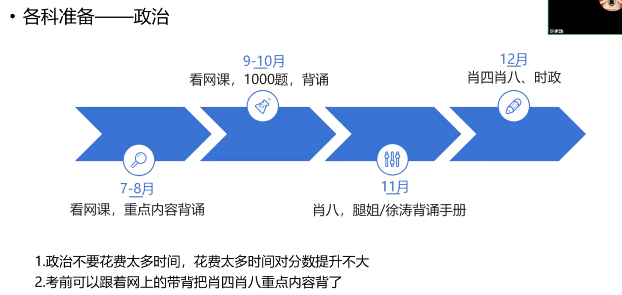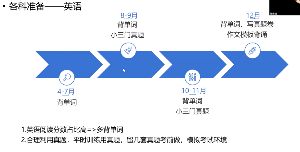 最后,家瑞学长分享了他个人考研过程中的时间安排与复习建议。