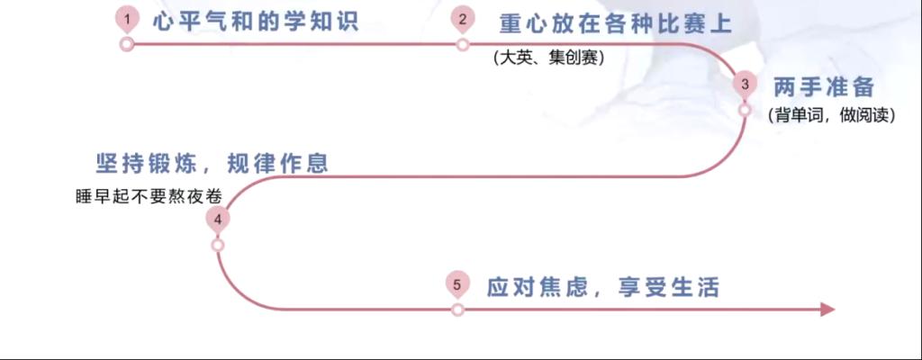 胡学长还分享了他个人的时间线。从一名大一新生,到学院辩论队成员,再到电工基地,接着考托福、学雅思、打电赛,一步步地走出自己的舒适区,坚持“什么时间干什么事情“,最终成功拿到暑期研究实习生的offer。“加权搭台, 科研唱戏”的经验总结深入人心。