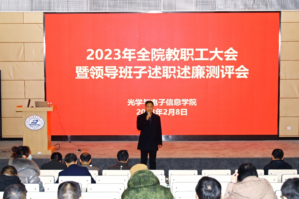 2月8日,我院在光电信息大楼举办2023年全院教职工大会暨领导班子述职述廉测评会。吕文中副院长主持会议,全体教职工参会。