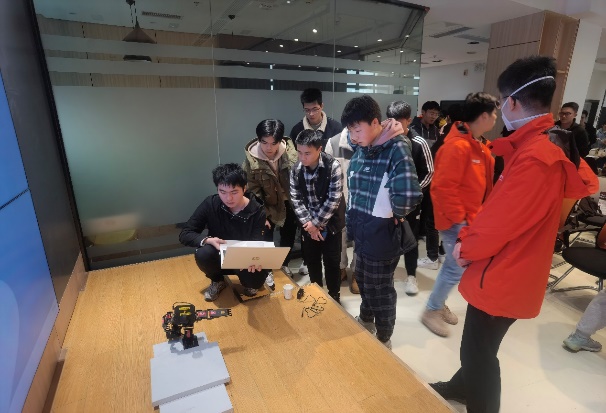 图6光电融合双创基地现有成员正在进行智能机器人等demo展示