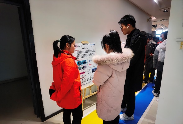 图5光电融合双创基地现有成员正在进行海报宣讲