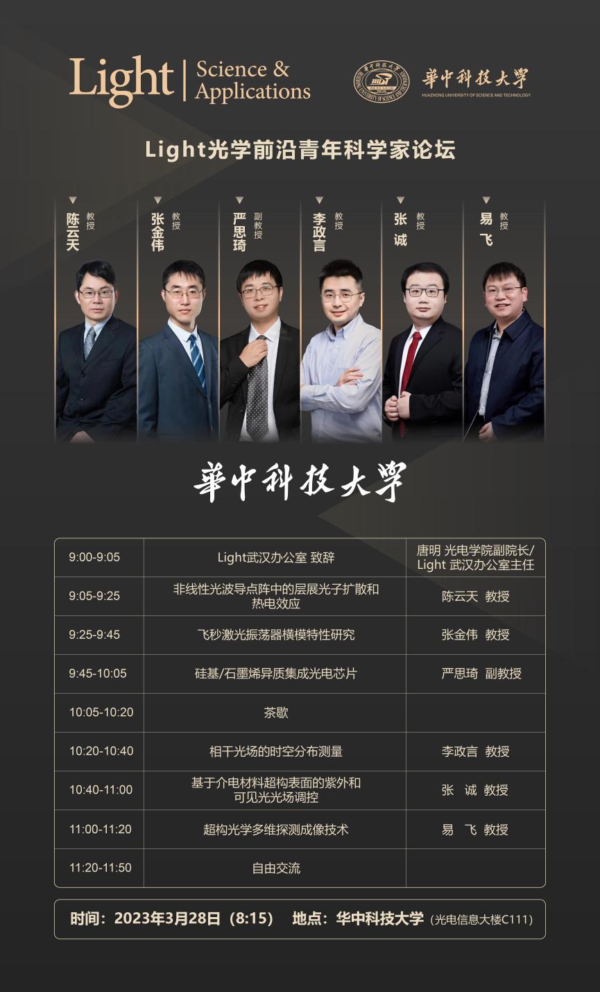 3月28日,Light武汉办公室揭牌仪式暨Light光学前沿青年科学家论坛在华中科技大学成功举办,本次论坛由华中科技大学光电信息学院与中科院长春光机所Light学术出版中心联合举办。