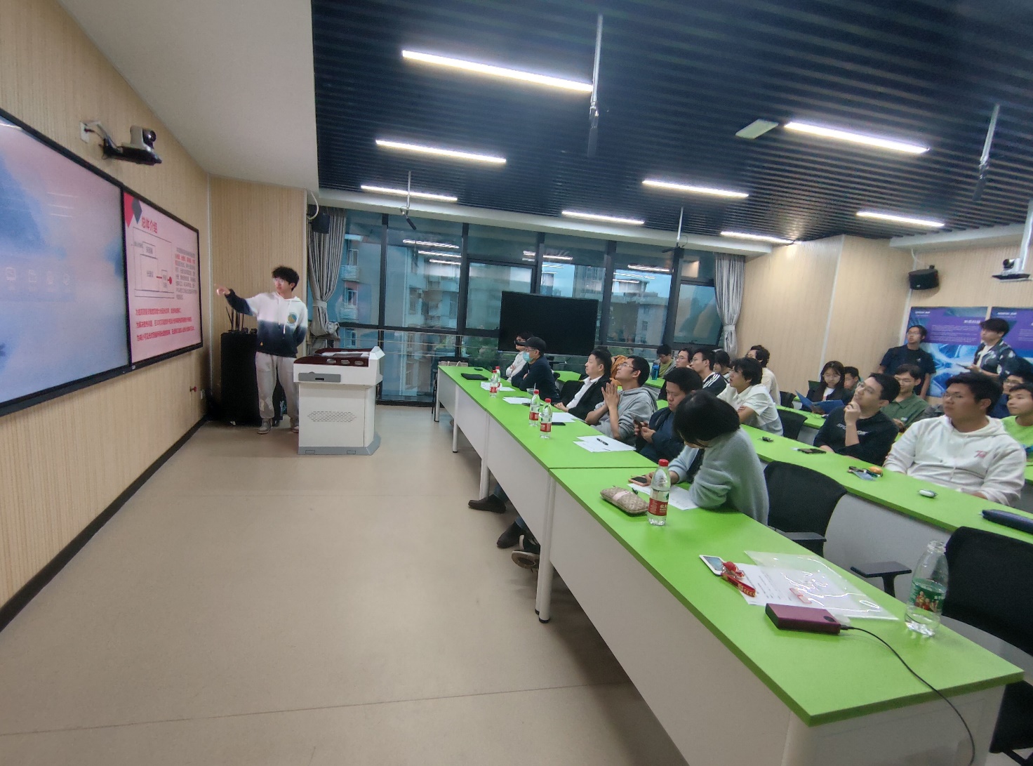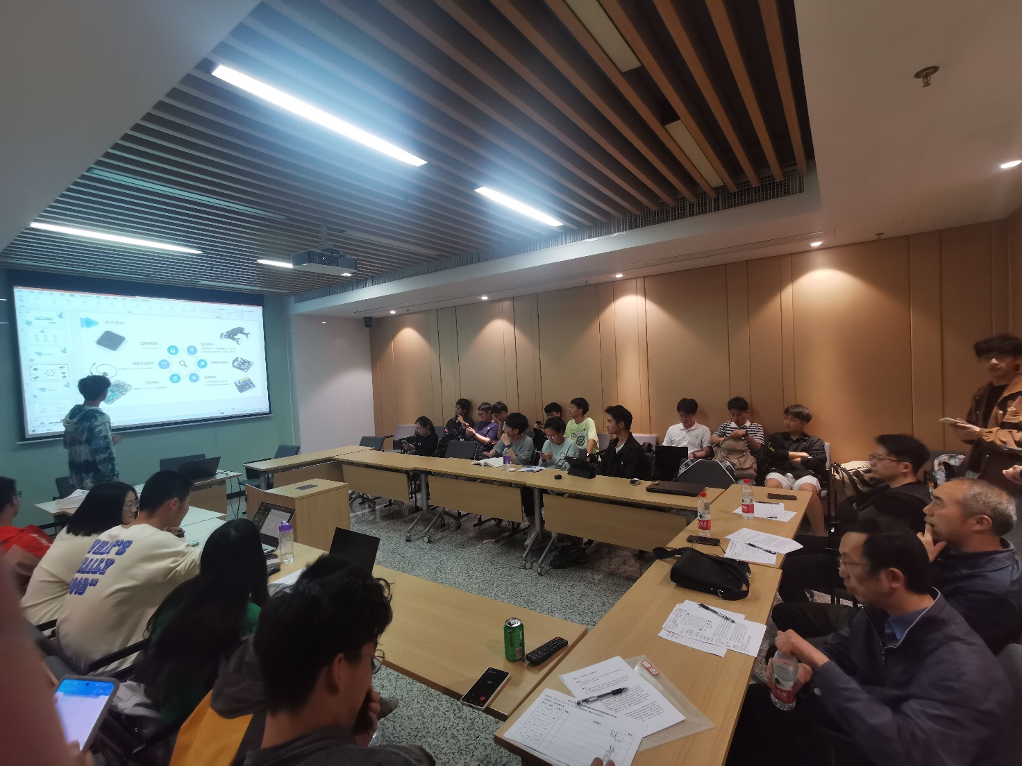 5月11日下午14:30,实验室在光电大楼B401邀请了吴裕斌老师为参赛队伍答疑解惑,主题为赛题二的“迷宫寻宝”光电智能小车。吴老师凭借自身丰富的科创与比赛经验,针对小车拐弯问题,从仿真测试、驱动方式、车体设计等多个角度提供了实用性建议。他还就小车车体的总体设计,包括车身总重、模型选择以及具体的电机、传感器、训练算法等方面给出了中肯的意见。在场的同学们都受益匪浅。