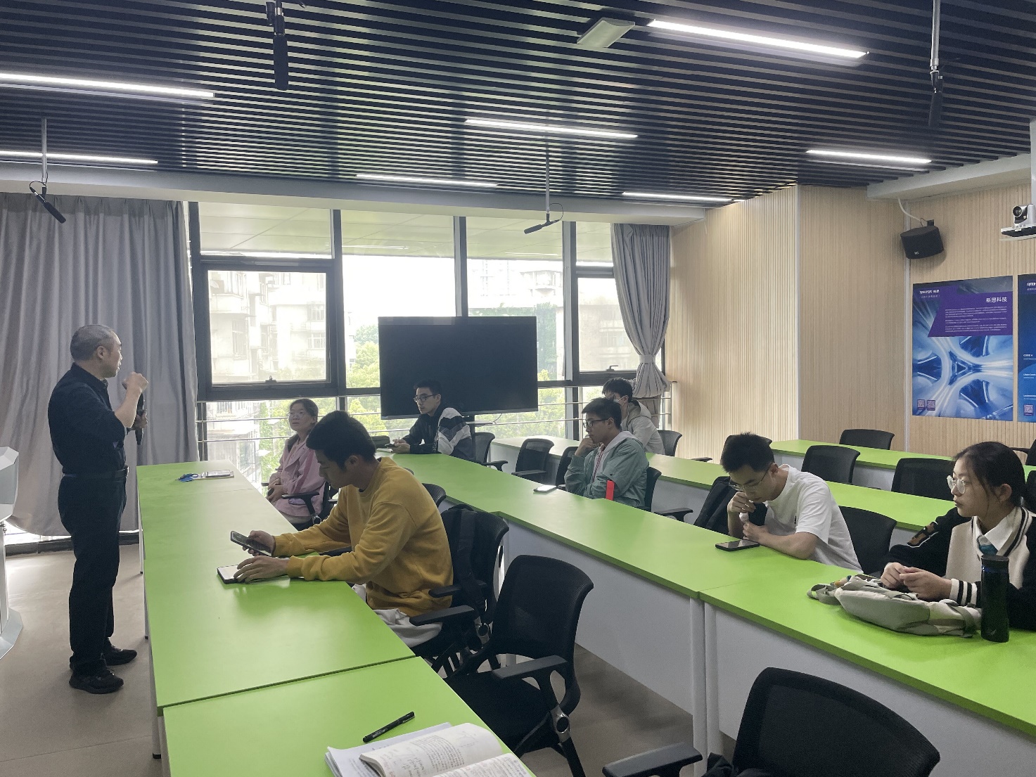 同时,5月11日下午14:30,实验室在光电大楼B402邀请了李泽、钱壮和陈智昊三位学长为参赛队伍答疑解惑,主题是赛题一的“酒精浓度的非接触测量”。学长们根据自己的科创竞赛经验,耐心细致地解答了学生们关于标定用仪器与试剂是否需要自行购买、密度仪的型号选择等技术细节问题,并就赛题给出了针对性建议。
