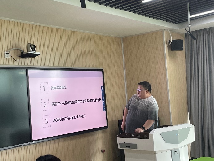 首先,《激光实验》课程负责人周海老师全面介绍了现阶段激光实验教学的内容、所设计的知识点、目前存在的困惑和思考。