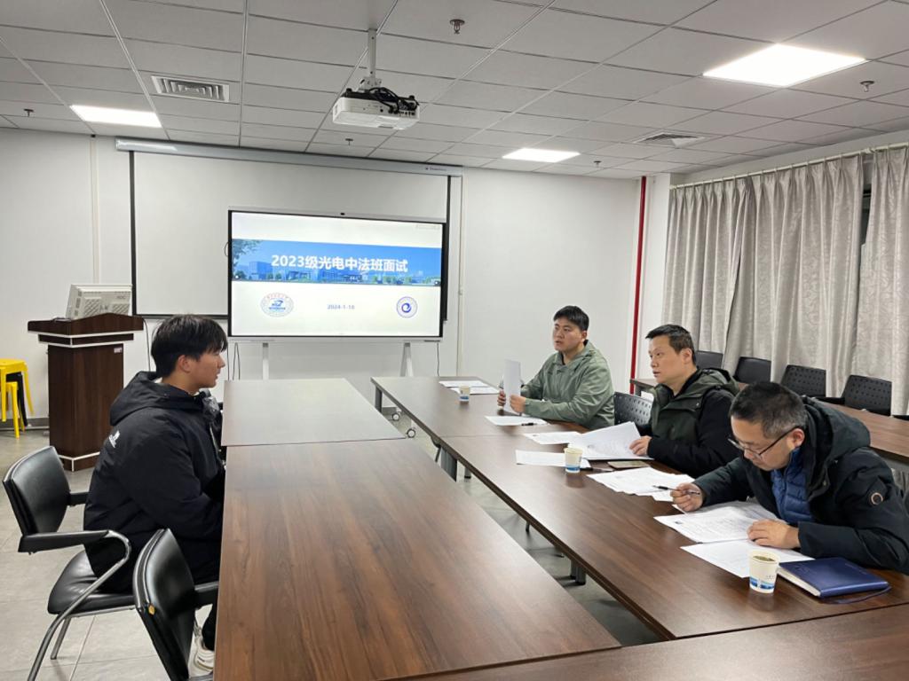 1月18日下午,学院2023级光电中法班面试在光电大楼举行。唐明副院长、陈林教授、23级辅导员韩天阳作为面试官出席会议,外事专员刘田昕主持会议。