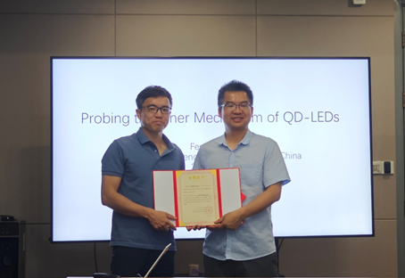 5月13日下午,中国科学技术大学樊逢佳教授做客第258期光电信息大讲堂,以“量子点LED中的科学原理与挑战”为题作报告。院长唐江教授为樊逢佳授予大讲堂荣誉证书。学院蓝新正老师作为邀请人主持报告会。
