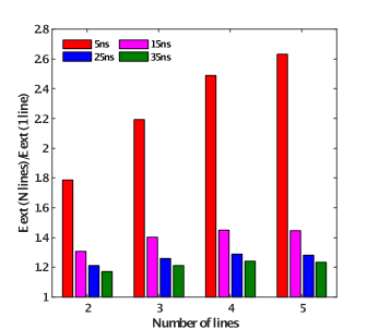 图3不同脉宽下多线对比单线提取效率的柱状图
