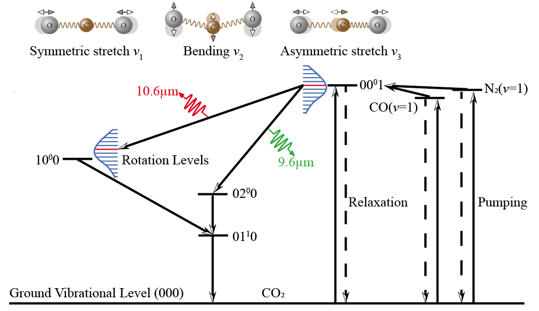 团队使用双波段和多谱线技术,基于六温度模型和随机旋转弛豫模型,优化了短脉冲CO2激光在轴快流CO2激光放大器中的放大效率,成功证明了与单线10P(20)放大相比,10.6μm与9.6μm双波段双线15ns脉冲的提取效率提高了约70%,强于10.6μm单波段四线放大。此外,该研究不仅可以为短脉冲CO2激光在轴快流CO2激光放大器中的高效放大提供理论支撑,还可以优化放大器参数,以获得更高的放大输出能量。