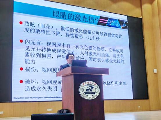 随后,唐霞辉教授围绕光学类实验室安全展开了全面且深入的讲解。培训内容涵盖激光辐射危害、防护措施、生产安全、设备安全以及安全管理等多个关键领域。唐教授不仅通过理论阐述让同学们系统地了解激光安全知识体系,还展示了一系列令人触目惊心的实验室激光伤害事件照片,以直观的视觉冲击强化大家对安全风险的认知。同时,他结合实际发生的事故案例,详细分析了事故产生的根源,进一步加深了同学们对实验室安全的理解与重视。