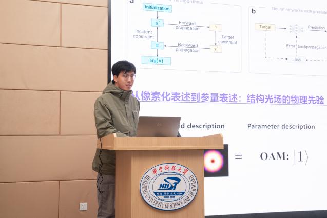 下半场,由陈韵茹博士、刘彦博士共同担任主持人,共有10个专题报告。主要报告有:刘彦博士“基于板条结构的高重频、短脉冲CO2激光放大器”、王修正博士“蓝光半导体激光模块线宽压缩及密集光谱合束”、孙奥博士“平面涡旋及时空涡旋的相关研究”、李恒阳博士“计算全息光场生成和重建”、李硕博士“基于三维光场调控的反射式整形元件设计与应用”、王鹏翔“LLE兴与衰”报告。
