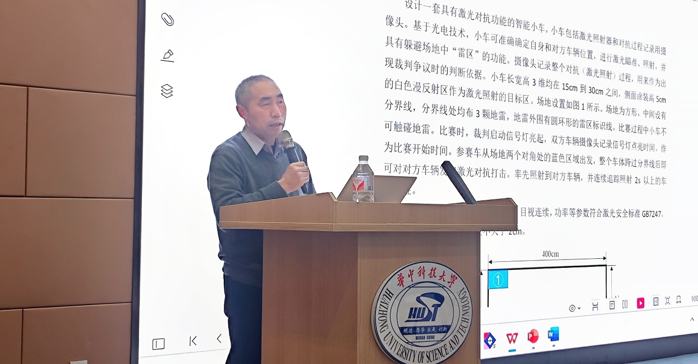 随后,吴裕斌老师针对往年光赛智能车方向的赛题特点,细致入微地分析了赛题一“智能车的激光对抗”中的设计难点。其中涉及漫反射目标区识别、激光跟踪、高帧率视频拍摄、自动避障以及路径规划等关键问题,并针对性地给出了一系列赛题方案的设计思路与方法。