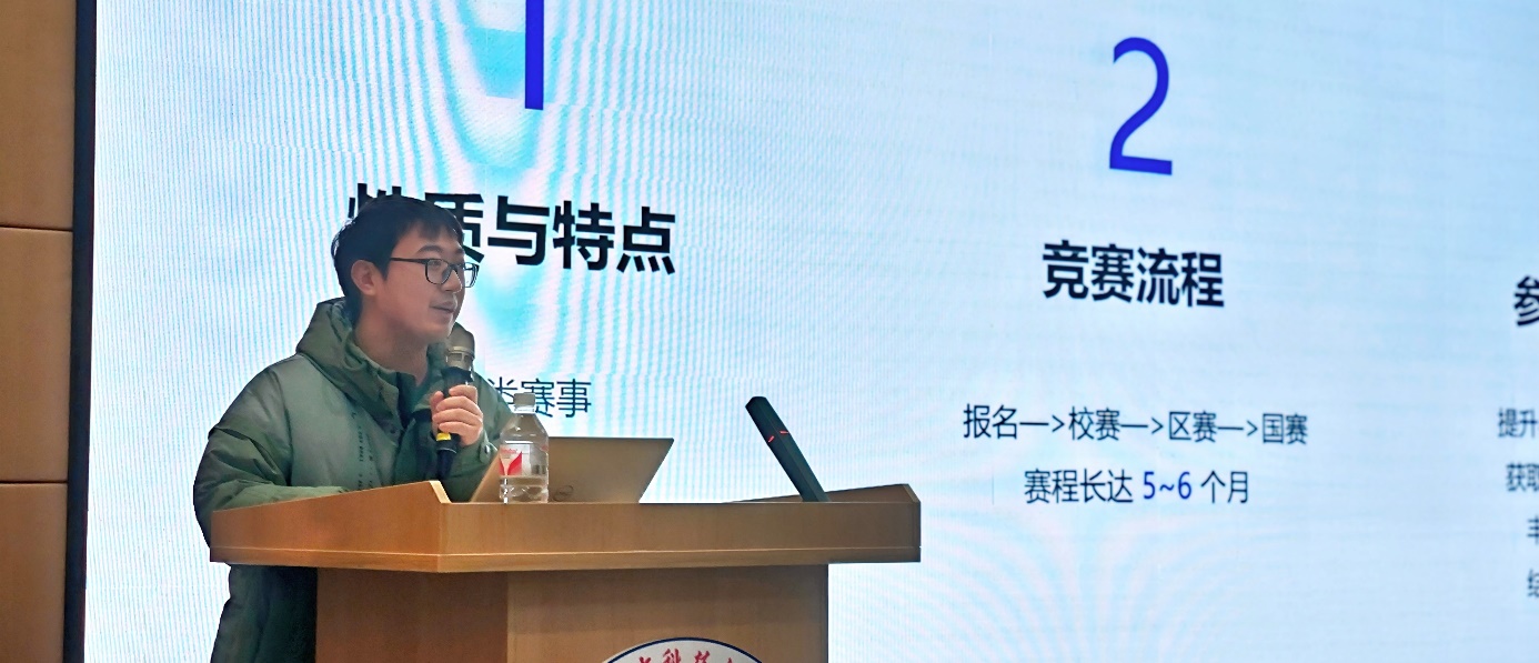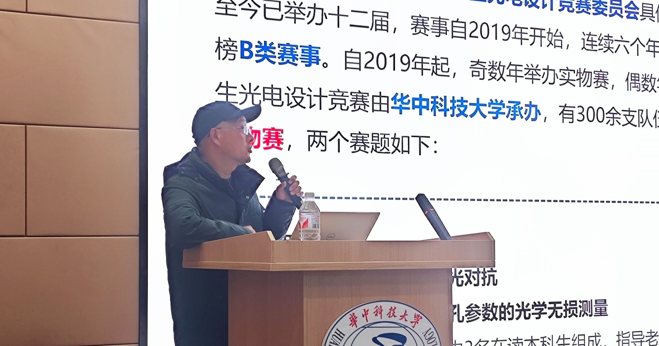 接着,光赛国赛获奖队伍队长——光实2101班周涵宇同学(上交电院直博),从参赛选手的专业角度,分享了自身的参赛经历与体验。他向同学们传授了许多宝贵的参赛实战经验,使与会同学倍感亲切,收获颇丰。