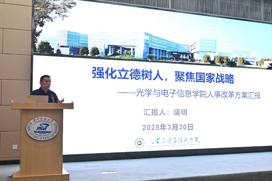会议伊始,学院党委书记唐明以“强化立德树人,聚焦国家战略”为主题,向全体教职工汇报了学院人事改革方案。唐明书记指出,面对新时代教育发展的挑战与机遇,学院将通过深化人事制度改革,优化人才引育机制,强化师德师风建设,确保立德树人根本任务的落实,为拔尖创新人才的自主培养提供坚实的支撑。