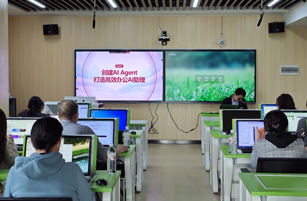 在培训过程中,老师们认真聆听,仔细记录关键信息,并积极参与互动交流。遇到疑惑之处,纷纷踊跃提问,讲师则耐心解答,确保大家都能理解掌握。实操环节更是将培训推向高潮,老师们将所学知识运用到实际操作中,加深对AI技术的理解与应用。原本繁琐复杂的工作任务,借助AI工具可以高效完成,大幅提升了工作效率。