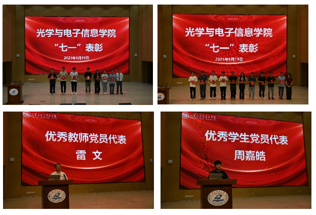 2025年6月19日下午,光电信息学院在光电大楼C118报告厅举办“七一”表彰暨师德师风专题报告。为深入学习贯彻党的二十大和二十届三中全会精神,充分发挥基层党组织的战斗堡垒作用和党员的先锋模范作用,学院在中国共产党成立104周年之际,召开七一表彰大会,表彰一批在教学、科研、管理、服务等工作中表现突出的先进典型,评优争先,弘扬正气。表彰大会由学院党委副书记李文龙主持。