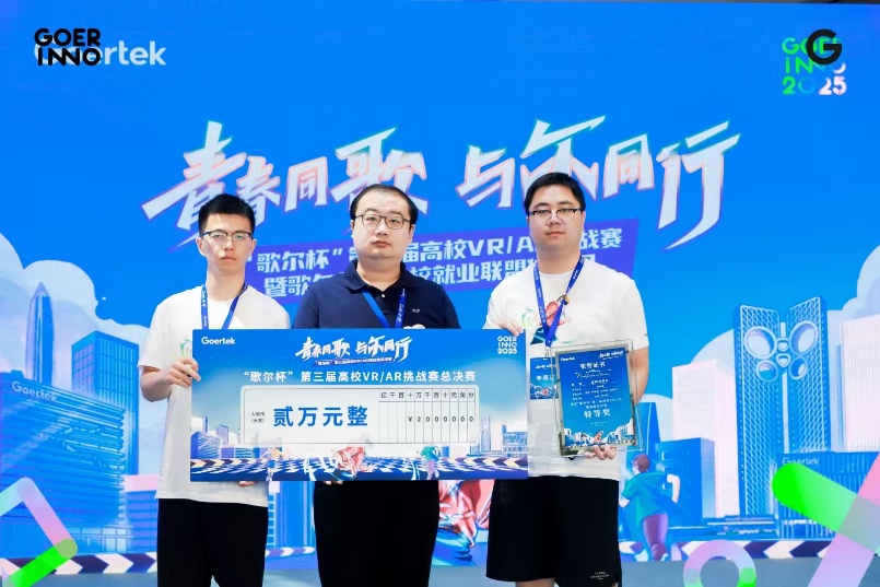 “歌尔杯”高校VR/AR挑战赛是面向全球高校学生的VR/AR创新创业赛事,已连续举办三届,从硬件设计、光学显示、交互技术到数字内容开发、行业应用解决方案,行业内容覆盖广泛。本届赛事共吸引中国、美国、新加坡、日本等多个国家50余所高校千余名学子参与,团队规模近300支。经过初赛、半决赛比拼,最终来自16所高校的31支精英队伍晋级本次总决赛。在总决赛中,各队伍通过生动的现场作品展演以及充分的互动交流,向企业高管、资深研发工程师以及来自国家虚拟现实创新中心的行业专家组成的评审团展示作品的技术创新性、突破性以及商业落地潜力。评审团从创新性、技术性、作品成熟度、市场和商业模式、现场表现等多个维度进行综合打分。最终,华中科技大学团队的作品“超构准直透镜赋能下一代轻薄高性能AR显示”脱颖而出,荣获全场最高荣誉——特等奖。