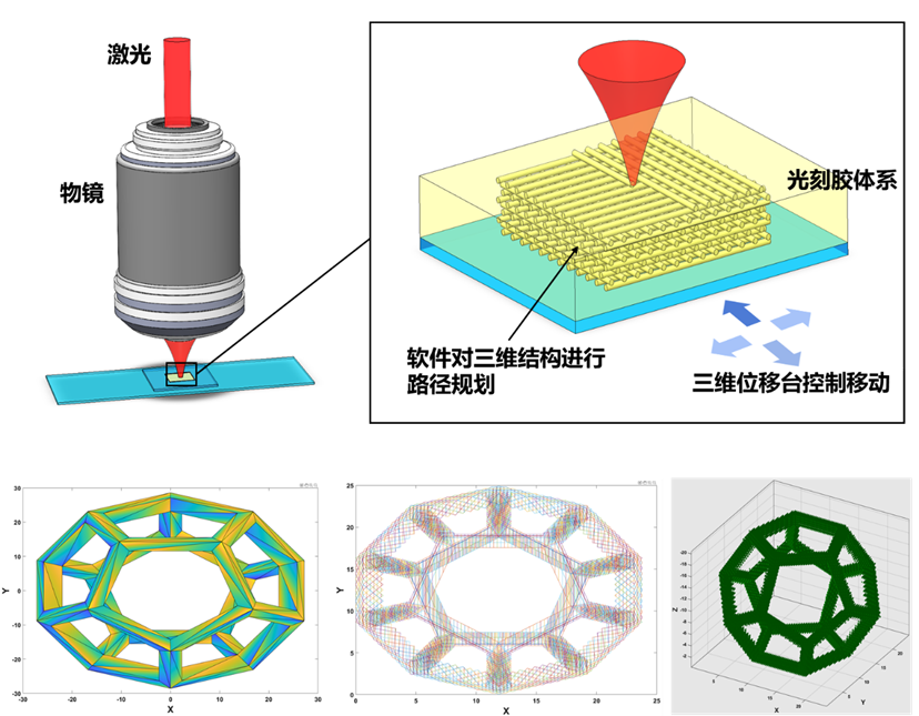 图4激光直写光刻机原理以及3D结构软件自动化分析与路径规划