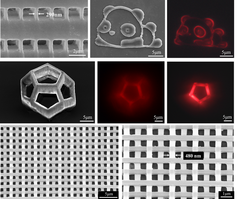由于飞秒激光超短脉冲所导致的瞬时双光子和三光子吸收是当前激光三维微纳制造应用中使用最为普遍的原理。尽管飞秒激光多光子光刻被广泛提及,并且其分辨率值反比于光子数的开根号,但是其同时要求的瞬时高激光功率使得基于飞秒激光的四光子光刻鲜有提及且难以实用。