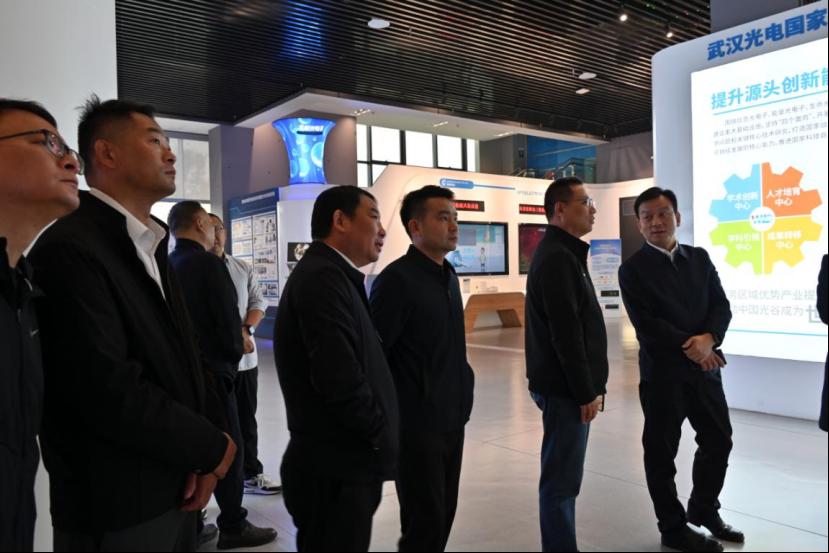 唐明书记、聂明局副院长针对赤壁市需求,从技术转化、平台共建等角度提出建议,赤壁市长彭光平,华中科技大学光电学院的思路为赤壁市产业规划提供了关键参考,后续将尽快梳理本地产业基础与资源禀赋。座谈后,双方合影留念,并共同参观武汉光电国家研究中心展厅,为后续合作奠定基础。