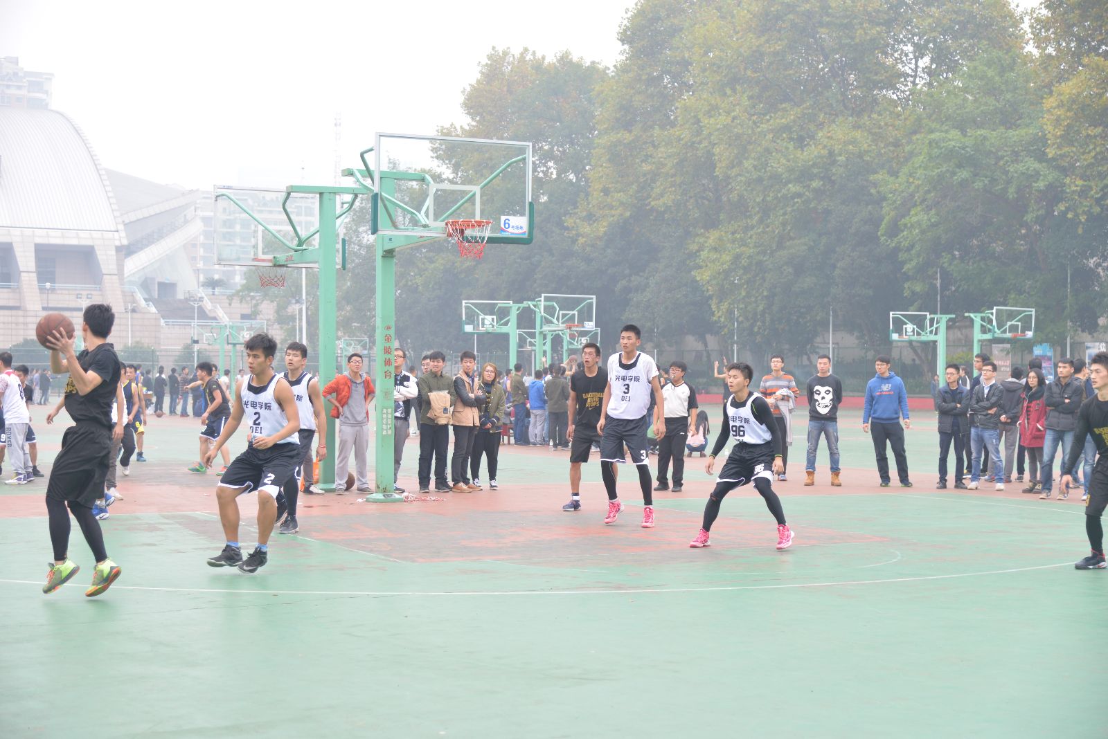 比赛还剩下一分半的时间,对方命中三分,将比分扳平,最后的决战时刻到来了,比赛的气氛达到了高潮,所有队员也放手一搏。自动化队员仍然想要通过远投得分,奈何手感不佳。而光电方面则采取突破,在篮下得到2分,时间已经剩下了不到10秒,抢到篮板后,光电展开快攻。对手防守犯规,裁判示意罚球,队员2罚1中,3分领先。时间所剩无几,自动化再次放手一搏,没有取得效果,这时,比赛的终场哨声响起。