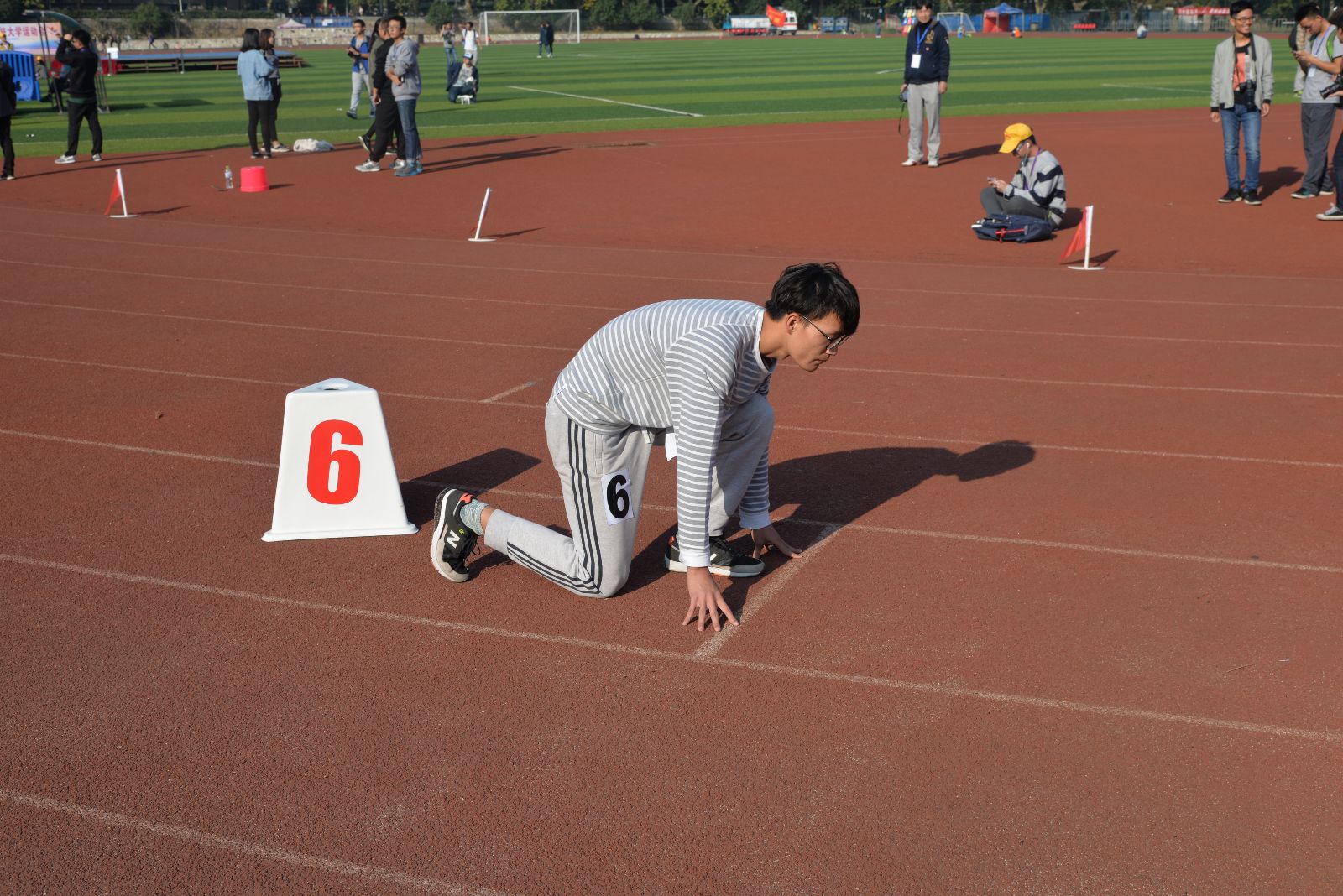下午16:45,最考验耐力的1500米比赛压轴开始了。甲组男子比赛中,保持着校1000米、1500米长跑记录的研一学生魏温典,继上午1000米斩获冠军后,依旧以压倒性的优势,在1500米的比赛中拿下冠军!钱旭东同学也表现优异,取得第八名的好成绩。