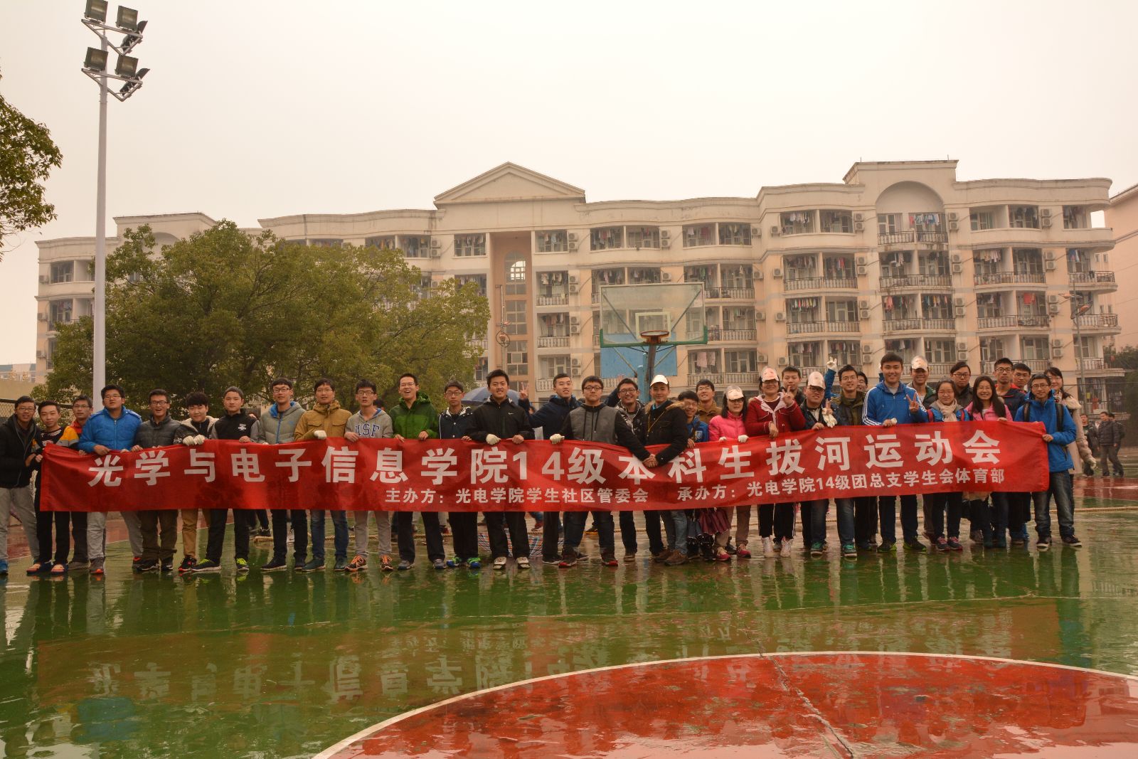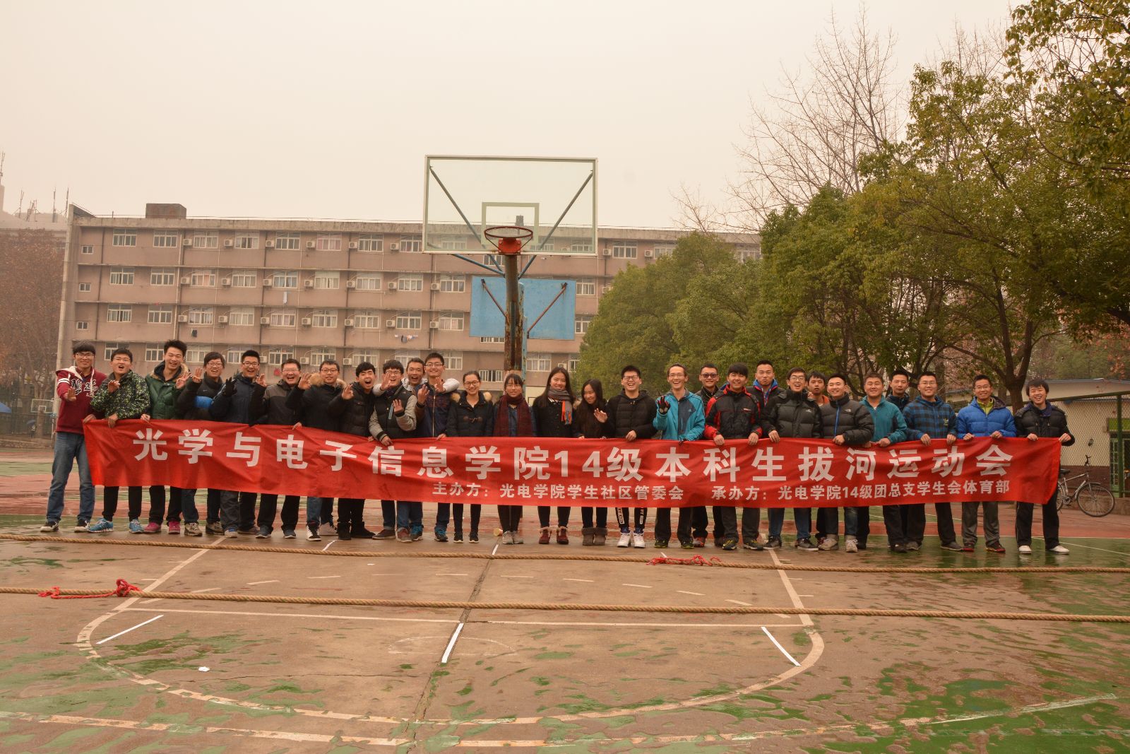 2015年12月20日,伟德国际唯一官网入口14级本科生拔河运动会在韵苑篮球场顺利举行。本次拔河比赛由光电信息学院学生社区管委会主办,14级团总支学生会体育部承办,旨在增强各班级的凝聚力。