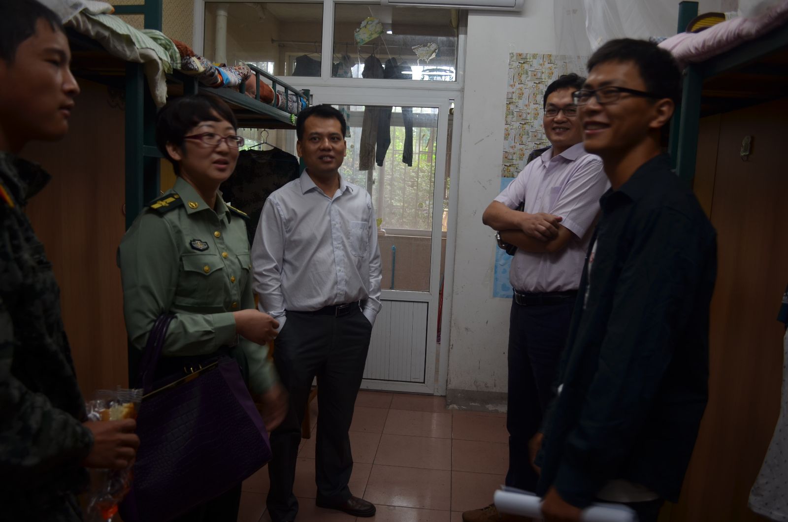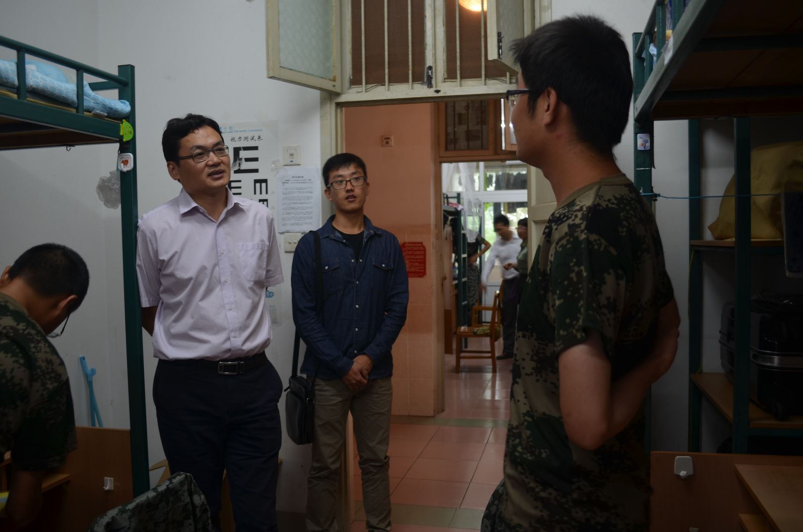 张新亮院长、刘继文书记和李玲书记访问了六栋、七栋、十二栋和二十七栋的大一新生寝室和学院在十二栋的团学联办公室。在寝室中,院长和书记与新同学们亲切交流,关心他们的生活,在遇到一些在军训中出现生病状况的同学,叮嘱其要及时去医院看病,注意饮食和休息。新同学们对院长和书记的到来感到很激动,与他们交流了自己的生活中出现的问题,院长叮嘱新生们在遇到问题的时候多找找滕捷和秦德超辅导员。